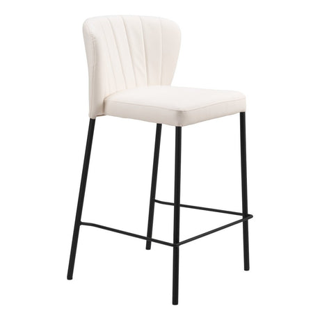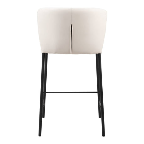 Set of Two 26" Cream And Black Faux Leather And Steel Counter Height Bar Chairs