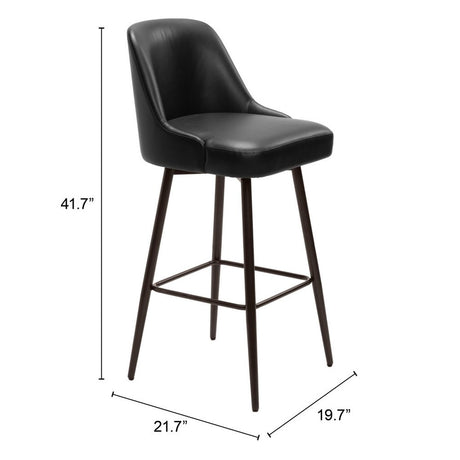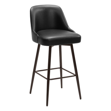 30" Black Faux Leather and Iron Low Back Bar Height Bar Chair