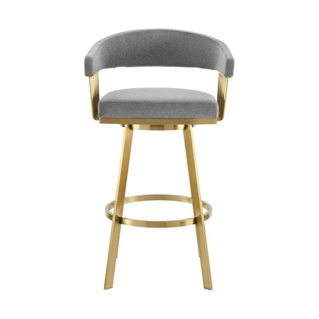 30" Gray and Gold Fabric and Stainless Steel Low Back Bar Height Swivel Bar Chair