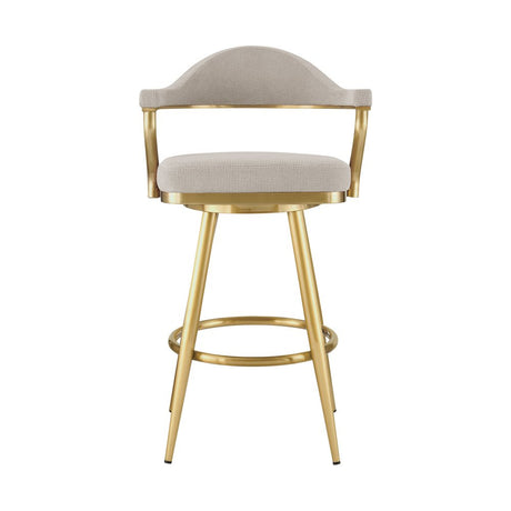 26" Taupe and Gold Fabric and Stainless Steel Counter Height Swivel Bar Chair