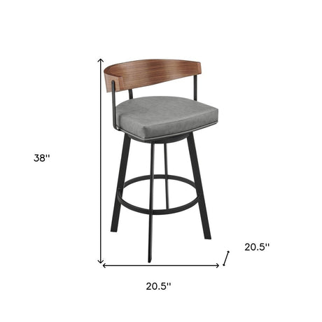 26" Gray Brown and Black Faux Leather and Iron Low Back Counter Height Swivel Bar Chair