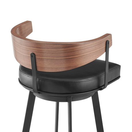 30" Black Faux Leather and Iron Low Back Bar Height Swivel Bar Chair