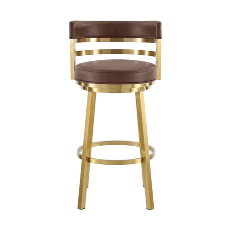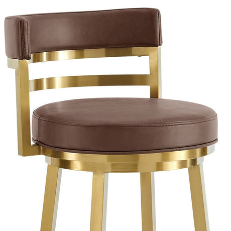26" Coffee and Gold Faux Leather and Stainless Steel Low Back Counter Height Swivel Bar Chair