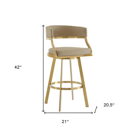 30" Sand and Gold Faux Leather and Stainless Steel Low Back Bar Height Swivel Bar Chair