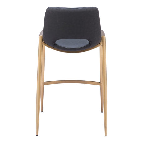 Set of Two 26" Black And Gold Faux Leather And Steel Low Back Counter Height Bar Chairs