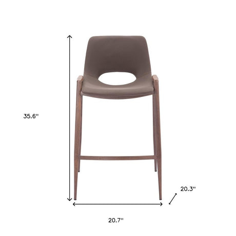 Set of Two 26" Brown Faux Leather And Steel Low Back Counter Height Bar Chairs
