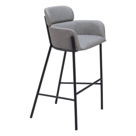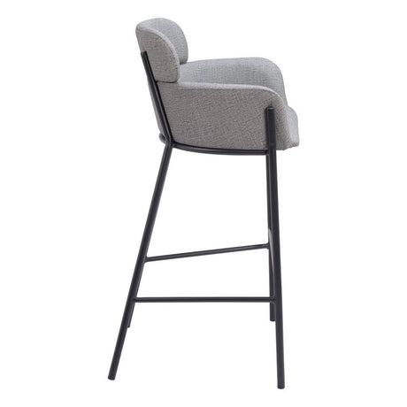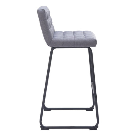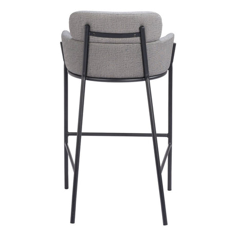 30" Slate Gray And Black Fabric And Steel Bar Height Bar Chair