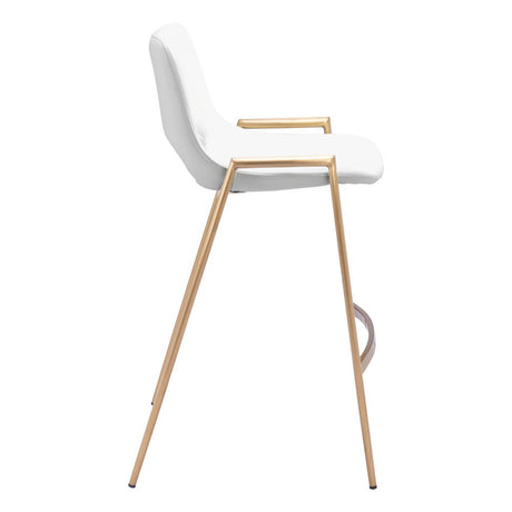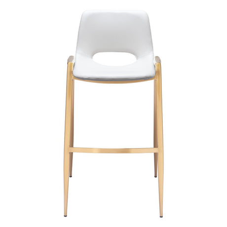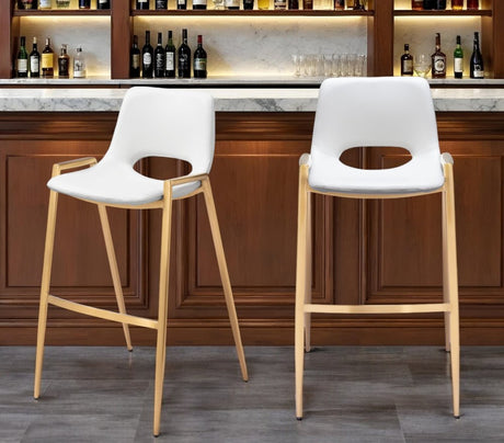 Set of Two 30" White And Gold Faux Leather And Steel Low Back Bar Height Bar Chairs