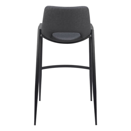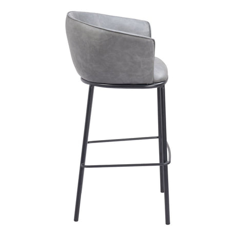 30" Gray And Black Faux Leather And Steel Bar Height Bar Chair