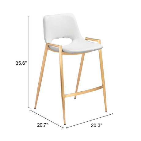 Set of Two 26" White And Gold Faux Leather And Steel Low Back Counter Height Bar Chairs
