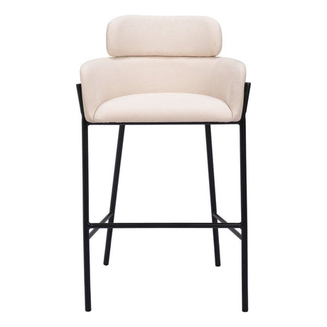 30" Beige And Black Fabric And Steel Bar Height Bar Chair