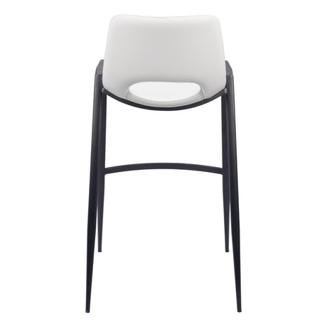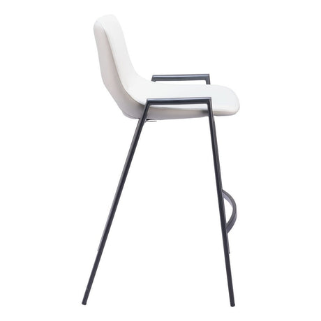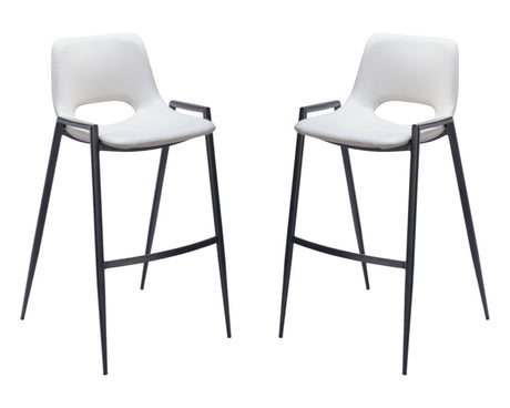 Set of Two 30" White and Black Faux Leather and Steel Low Back Bar Height Bar Chairs