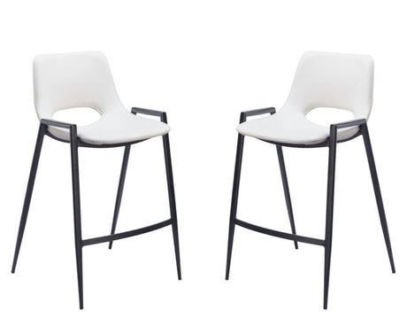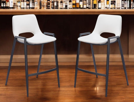 Set of Two 26" White and Black Faux Leather and Steel Low Back Counter Height Bar Chairs