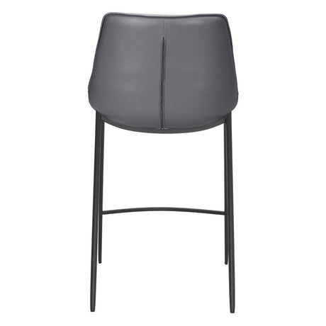 Set of Two 26" Gray And Black Faux Leather And Steel Counter Height Bar Chairs