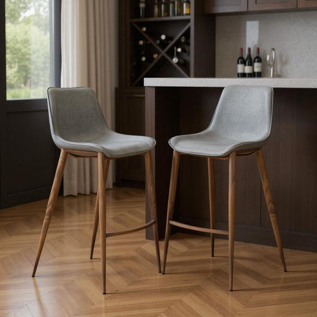 Set of Two 29" Gray And Black Faux Leather And Steel Bar Height Bar Chairs
