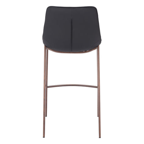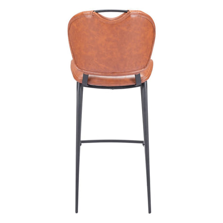 30" Brown And Black Faux Leather And Steel Bar Height Bar Chair