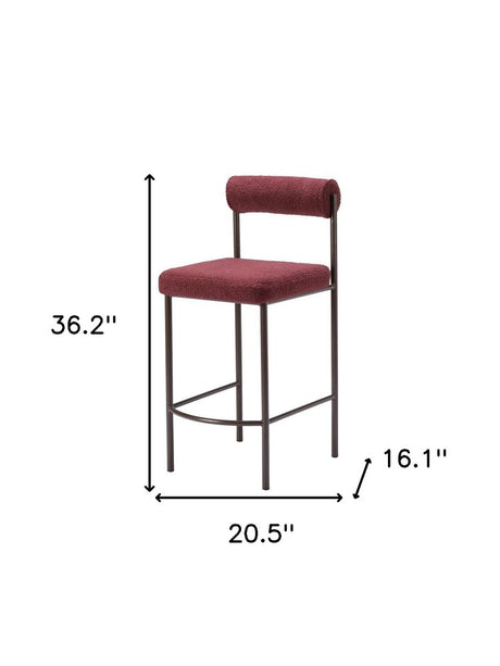 Set of Two 26" Red and Bronze Shearling and Steel Low Back Counter Height Bar Chairs