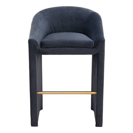30" Gray And Gold Velvet And Steel Low Back Bar Height Bar Chair