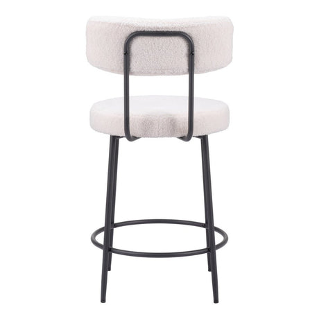 30" Ivory And Black Shearling And Steel Bar Height Bar Chair