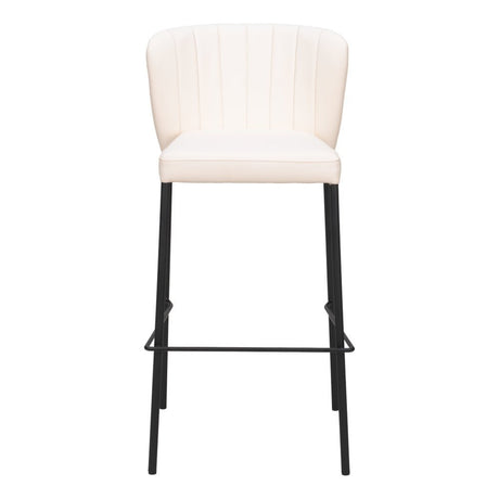 Set of Two 29" Cream And Black Faux Leather And Steel Bar Height Bar Chairs