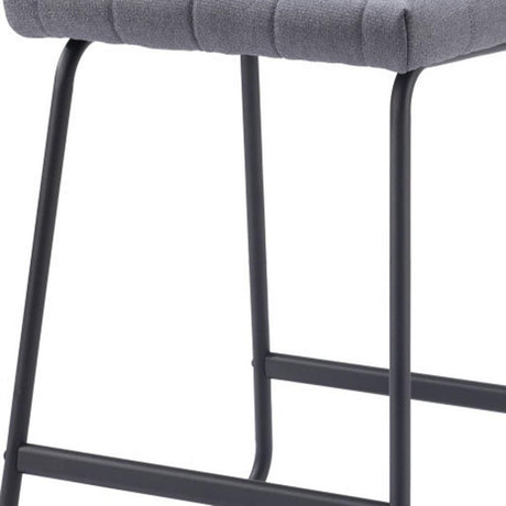 Set of Two 25" Gray And Black Fabric And Steel Counter Height Bar Chairs