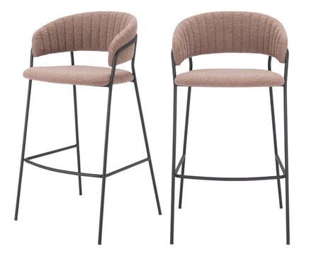 Set of Two 30" Brown and Black Shearling and Steel Low Back Bar Height Bar Chairs