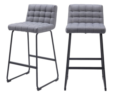 Set of Two 30" Gray And Black Fabric And Steel Bar Height Bar Chairs
