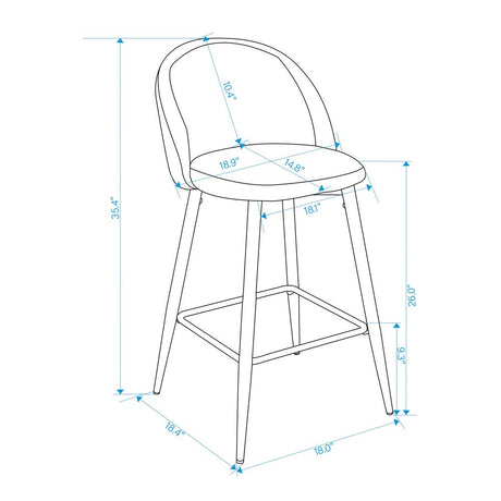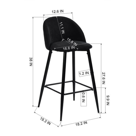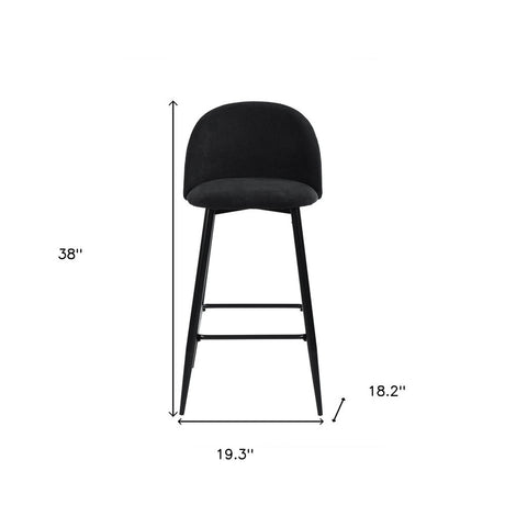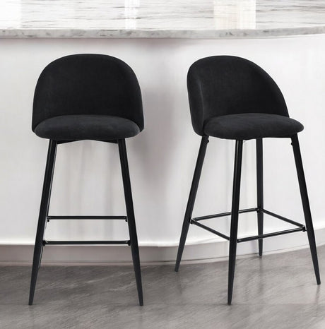 Set of Two 28" Blue And Black Velvet And Steel Low Back Bar Height Bar Chairs