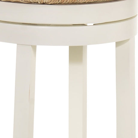 24" Natural And Antiqued White Solid Wood Swivel Backless Counter Height Bar Chair