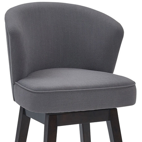 31" Gray And Espresso Solid Wood Swivel Low Back Bar Height Bar Chair