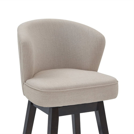 27" Tan and Espresso Fabric and Solid Wood Low Back Counter Height Swivel Bar Chair