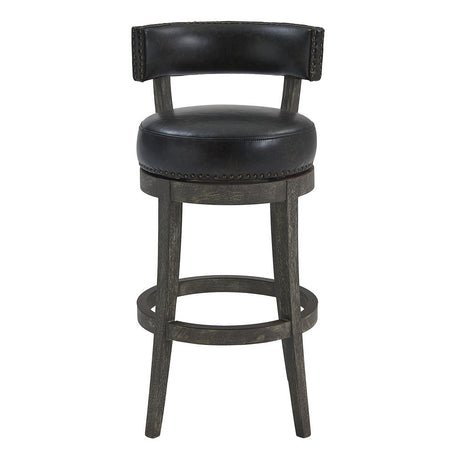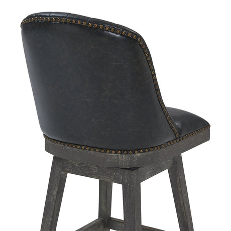 31" Onyx And Gray Faux Leather And Solid Wood Swivel Bar Height Bar Chair