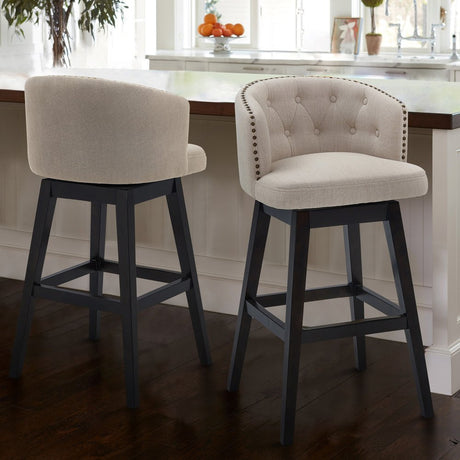 26" Tan And Espresso Solid Wood Swivel Low Back Counter Height Bar Chair