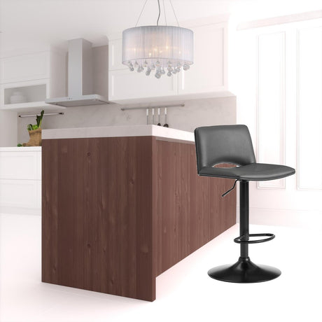 24" Gray And Black Faux Leather And Iron Swivel Low Back Adjustable Height Bar Chair