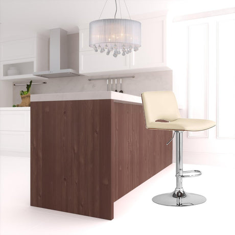 24" Cream And Silver Faux Leather Swivel Low Back Adjustable Height Bar Chair