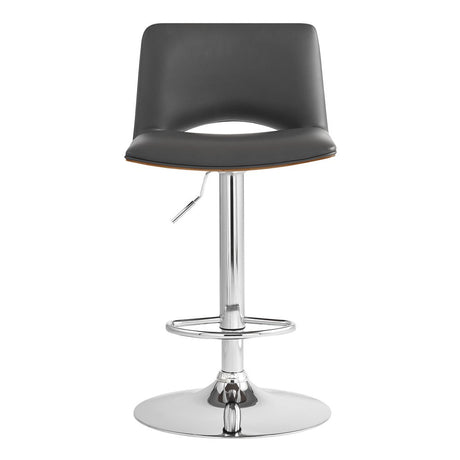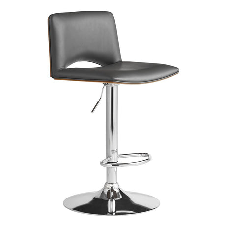 24" Gray And Silver Faux Leather Swivel Low Back Adjustable Height Bar Chair