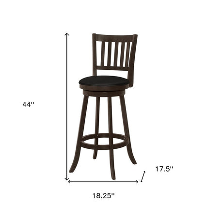 Set of Two 29" Black and Espresso Faux Leather and Solid Wood Bar Height Swivel Bar Chairs