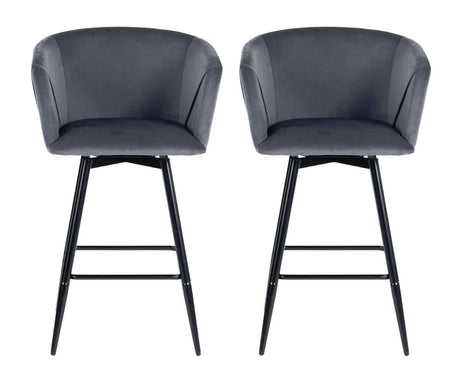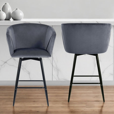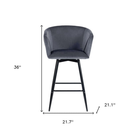Regular price $293.13Unit price /Unavailable Set of Two 28" Gray And Black Velvet And Steel Low Back Bar Height Bar Chairs