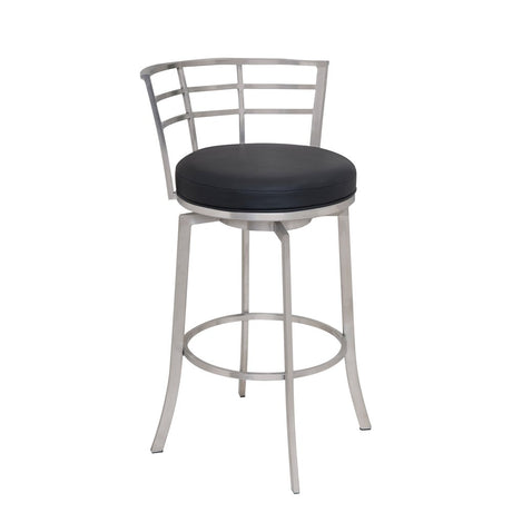 26" Black And Silver Faux Leather And Iron Swivel Low Back Counter Height Bar Chair