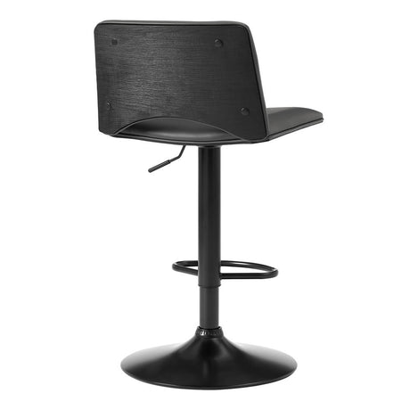 24" Black And Brown Faux Leather And Solid Wood Swivel Low Back Adjustable Height Bar Chair