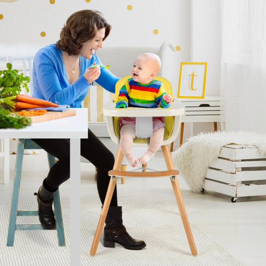 3-in-1 Convertible Wooden High Chair with Cushion-Yellow