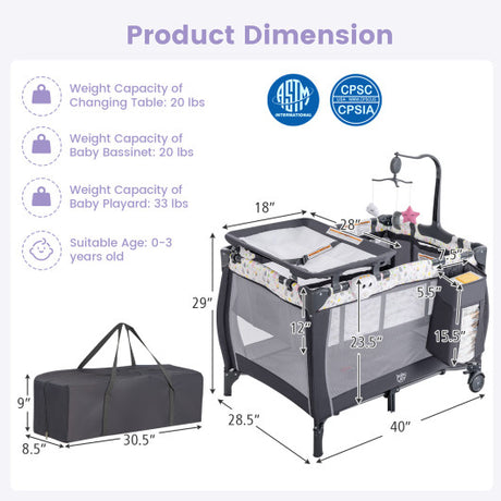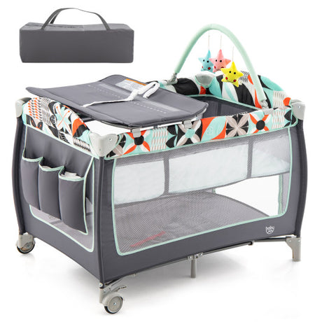 Portable Baby Playard with Changing Table Bassinet and Music Box-Multicolor