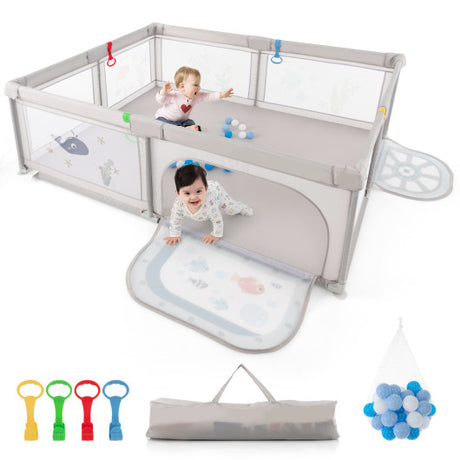 Large Baby Playpen with Pull Rings Ocean Balls and Cute Pattern-Whale