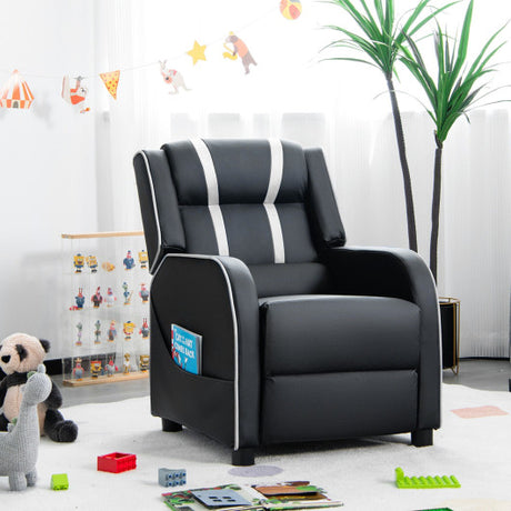 PU Leather Kids Recliner Chair with Cup Holders and Side Pockets-Black