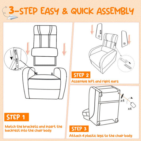 Ergonomic PU Leather Kids Recliner Lounge Sofa for 3-12 Age Group-Gray