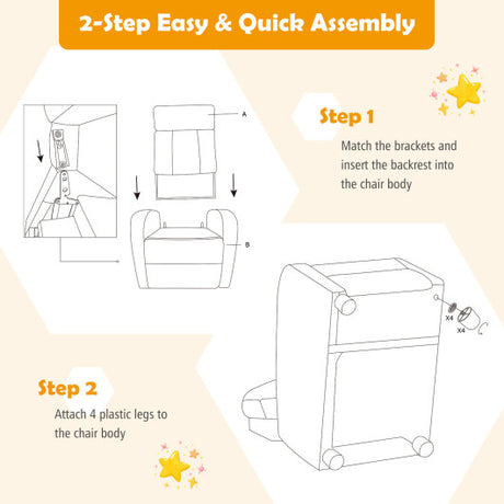 Ergonomic PU Leather Kids Recliner Lounge Sofa for 3-12 Age Group-Brown