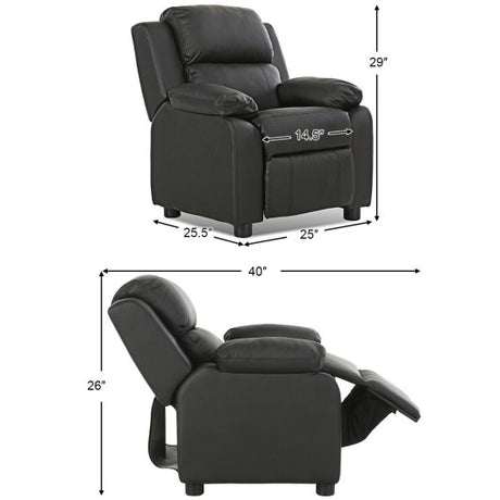 Kids Deluxe Headrest Recliner Sofa Chair with Storage Arms-Black