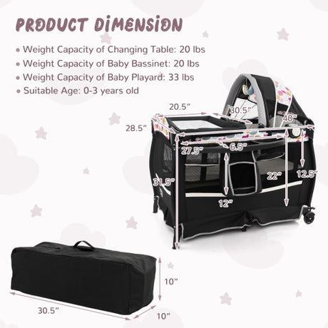 4 in 1 Portable Pack and Play Baby Nursery Center with Bassinet-Pink