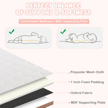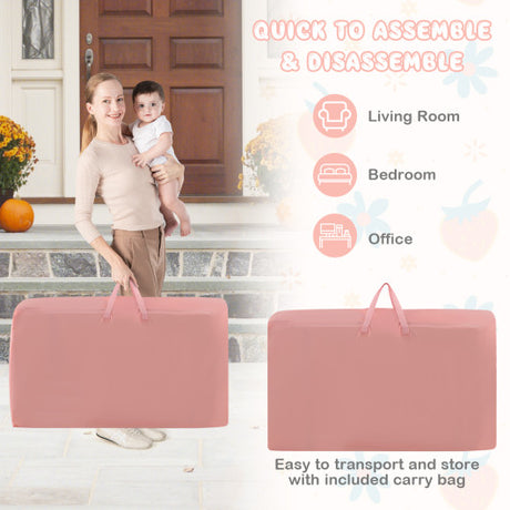 Height Adjustable Bedside Sleeper with Storage Bag and Soft Mattress for Baby-Pink
