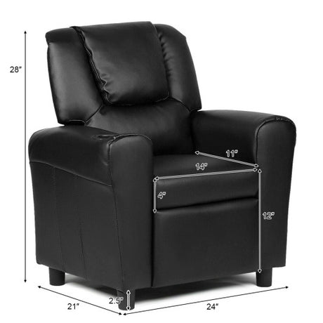 Ergonomic PU Leather Kids Recliner Lounge Sofa for 3-12 Age Group-Black
